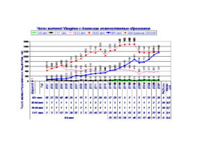 На диаграммах 1-5 представлена динамика числа регистрируемых жителей Visaginas. с самым высоким рейтингом. Рейтинг рассчитывался по числу регистрируемых жителей в расчете на 1000 чел.