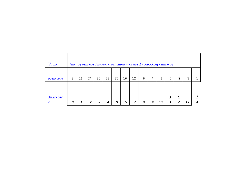 - Число диагнозов с рейтингом регионов более 1,таблица 3