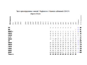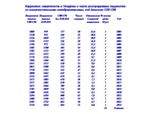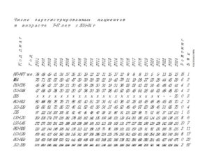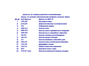 Данные позволяют изучить динамику изменения заболеваемости по каждому диагнозу, перечень диагнозов, по которым проведена систематизация, приведен в таблице 1.