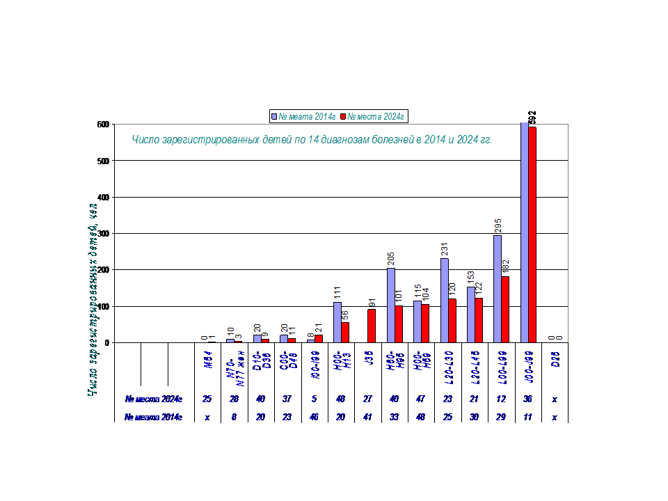 На диаграмме 1 представлены сравнительные данные по числу зарегистрированных детей в 2014 г и 2024 г.