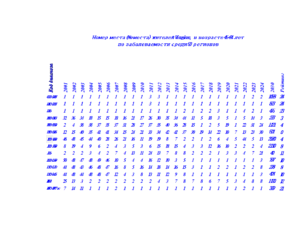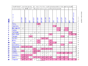 Систематизированные данные оформлены в формате «ekcel» и позволяют изучить не только динамику изменения заболеваемости по каждой возрастной группе, но и рассчитать рейтинг заболеваемости жителей по каждому региону.