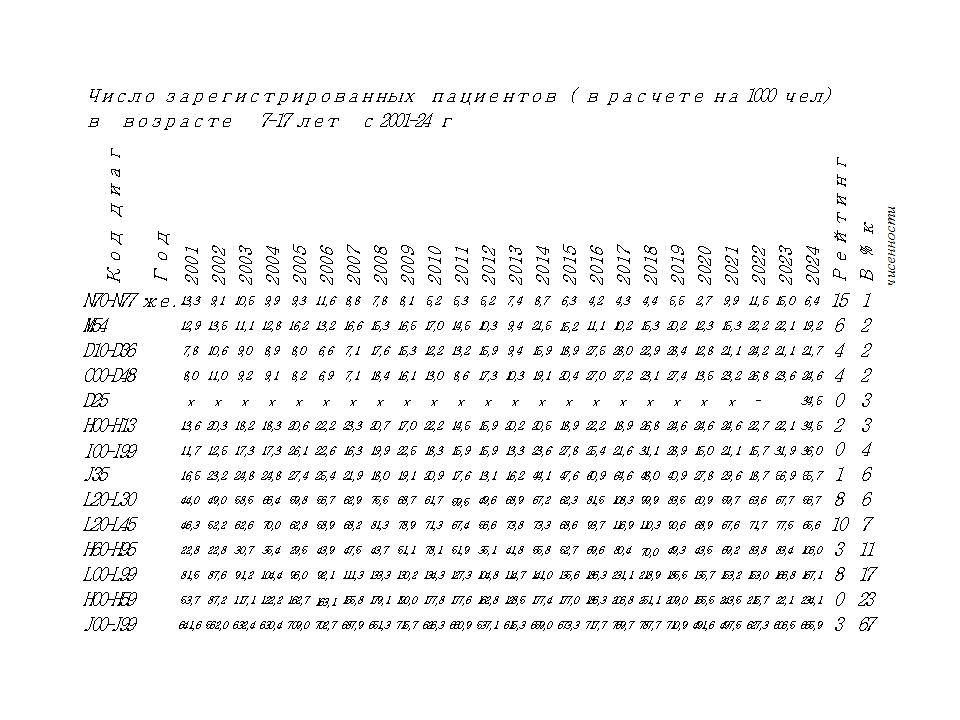 Систематизированные данные оформлены в формате «ekcel» и позволяют изучить динамику изменения заболеваемости по каждой возрастной группе и диагнозу.