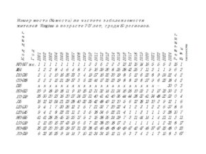 При сравнительном анализе особое место занимают данные о численности жителей в каждой возрастной группе. Если численность жителей занижена, то значение числа зарегистрированных пациентов, в расчете на 1000 жителей, увеличивается, при завышении численности жителей, номер места среди регионов увеличивается.