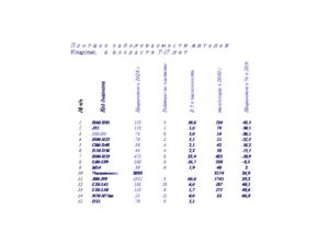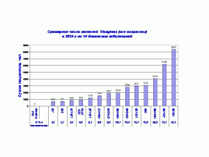 На основании данных расчета числе пациентов, с учетом численности жителей в возрастной группе (расчет на 1000 чел) составлен рейтинг жителей Visaginas за 24 -летний период, таблица 6.