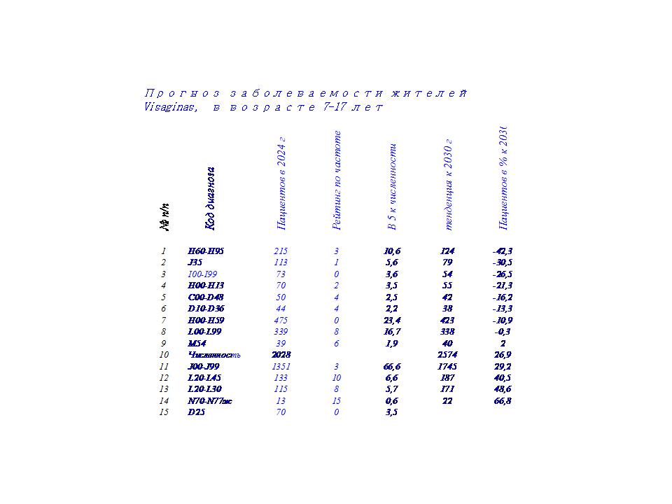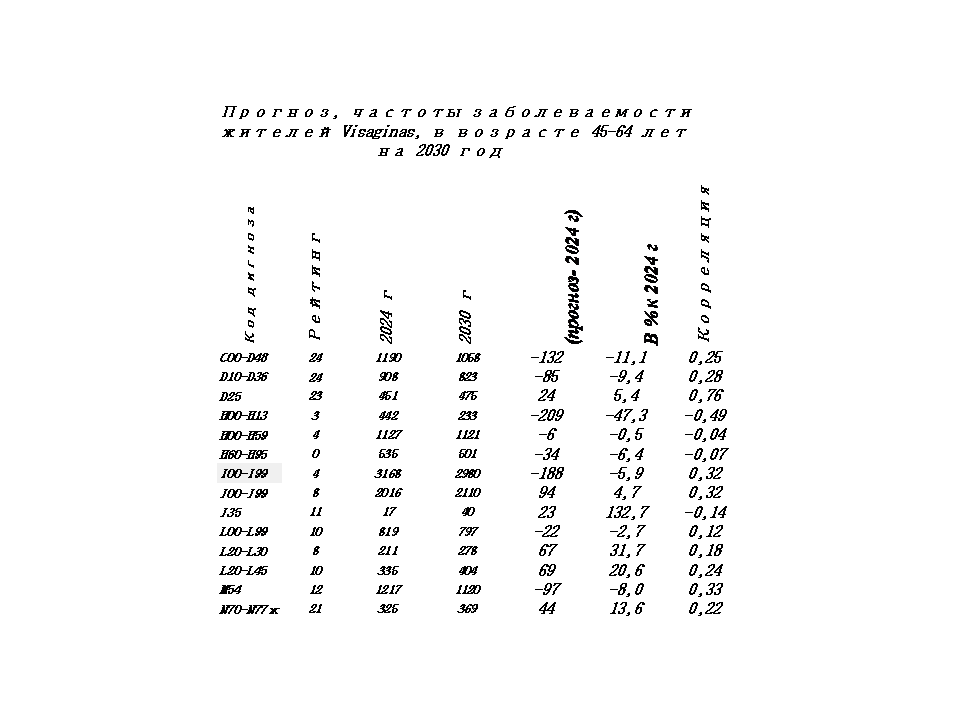 Систематизированные данные, по частоте заболеваемости жителей Visaginas позволяют спрогнозировать заболеваемость на 2030 год. Результаты прогноза представлены в таблице 6.