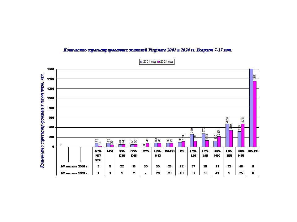 Динамика изменения заболеваемости жителей Visaginas, в возрасте 7-17 лет с 2001-24 гг.