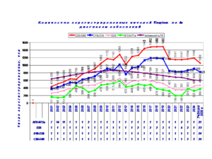 В качестве примера, на диаграмме 2 представлены данные числа регистрируемых жителей по каждому году и численность жителей.
