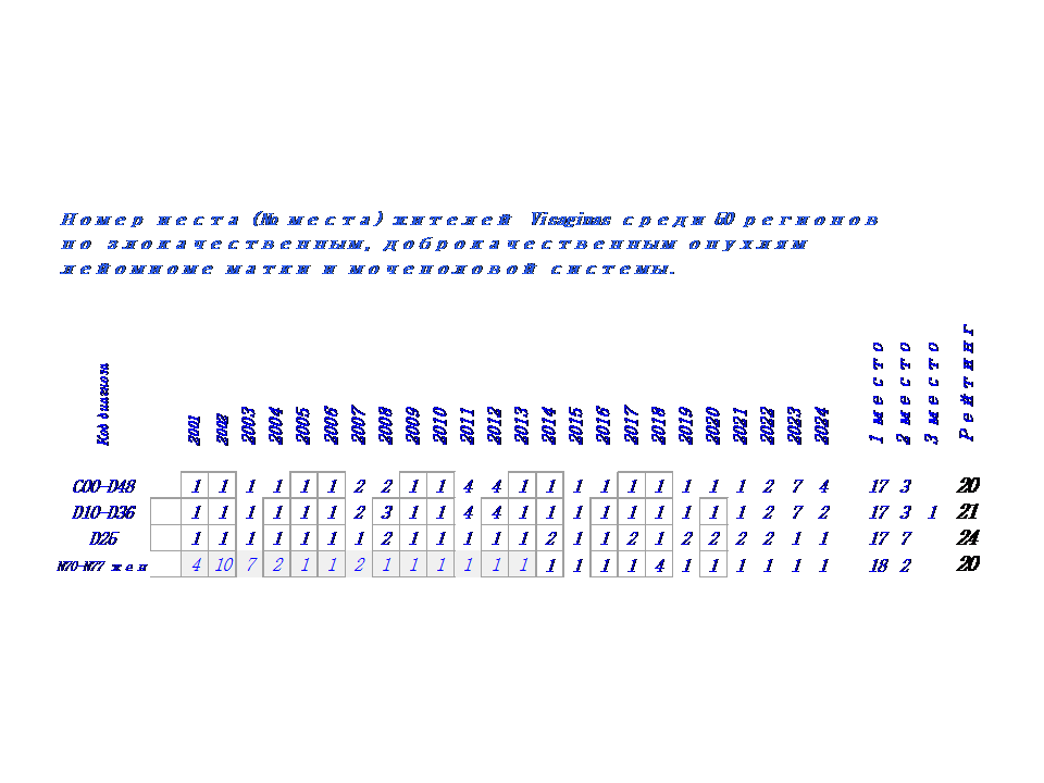 С таким диагнозом жители города, в течение 24 лет 17 раз занимали 1 место, среди 50 регионов и 7 раз 2 место.