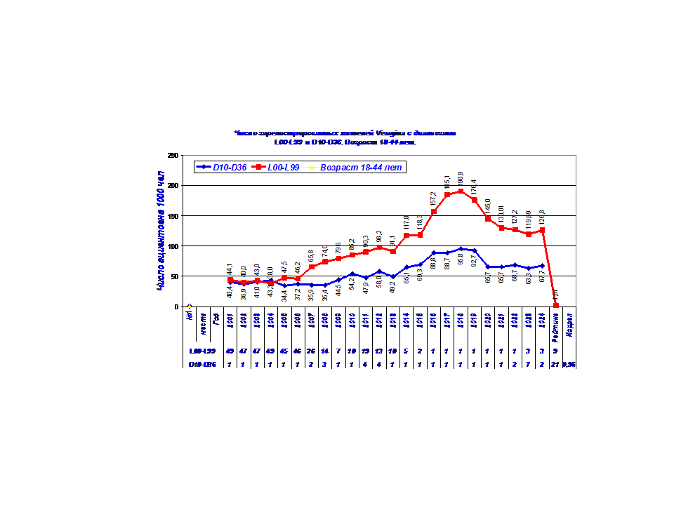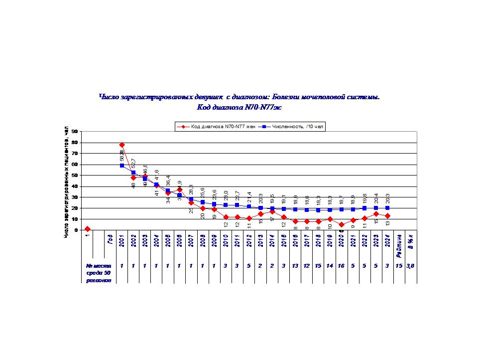 N70-N77ж прогнозируется увеличение пациентов с 20,6 % до 66,8 %.. Основной вклад в заболеваемость будут вносить кожные болезни и болезни мочеполовой системы.