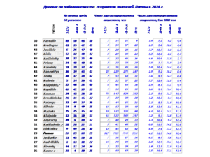 В 2024 г проведена систематизация данных по 14 диагнозам заболеваний у жителей в 50 регионах Литвы с 2001-24 г.