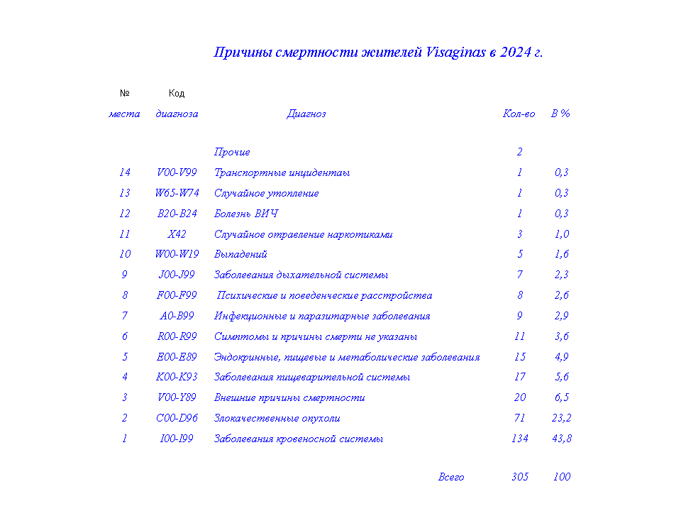 На основании данных Института гигиены Литвы [1] систематизирована смертность в Visаginas за 2024 г.