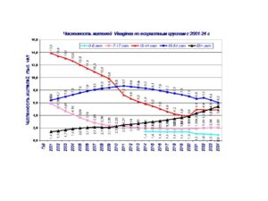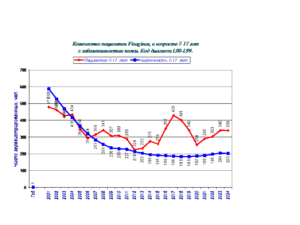 В 2014 г численность детей в возрасте 0-6 лет была 705 чел, в 2014 численность увеличилась до 885 младенцев, тем не менее, число регистрируемых детей сократилось практически по всем диагнозам.
