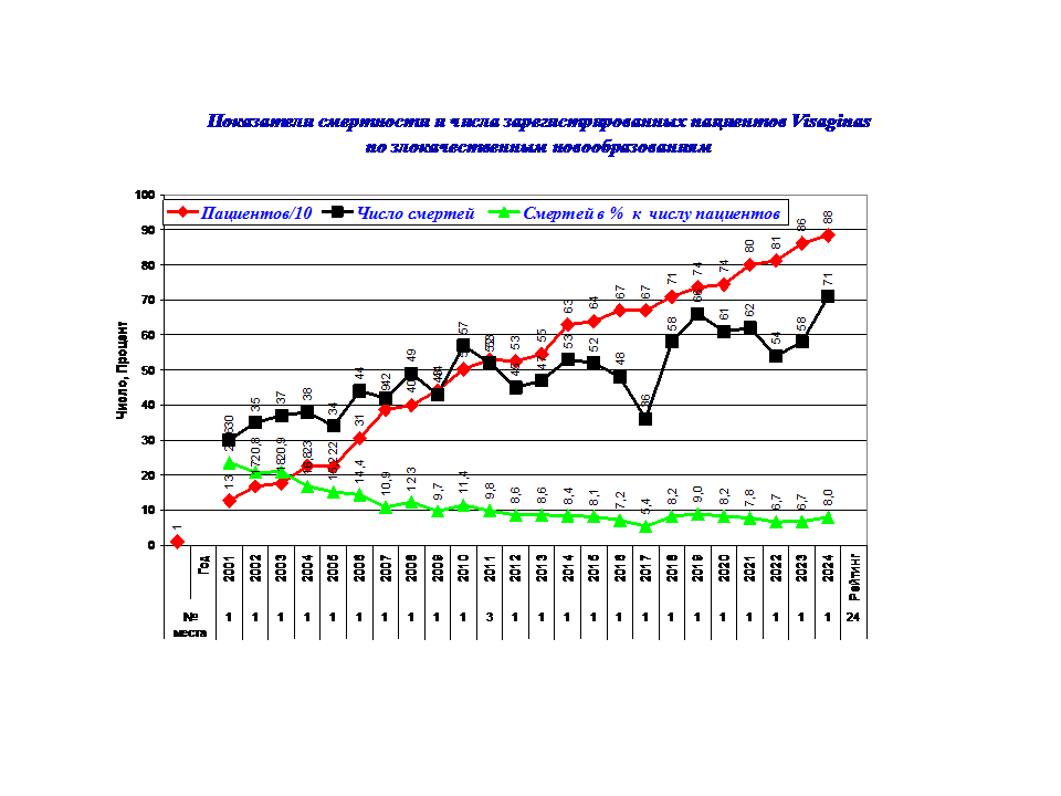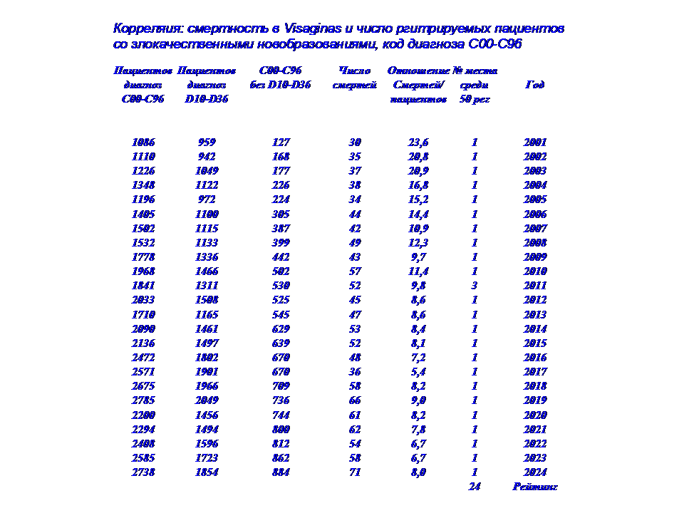 - Заболеваемость и смертность жителей Visaginas в 2001-24 г. в т.ч. от злокачественных новообразований.