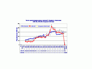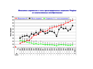 Следует отметить, что коэффициент корреляции: смертность- число регистрируемых пациентов с злокачественными новообразованиями достаточно высокий и равен 0,8.