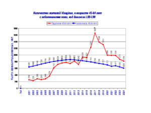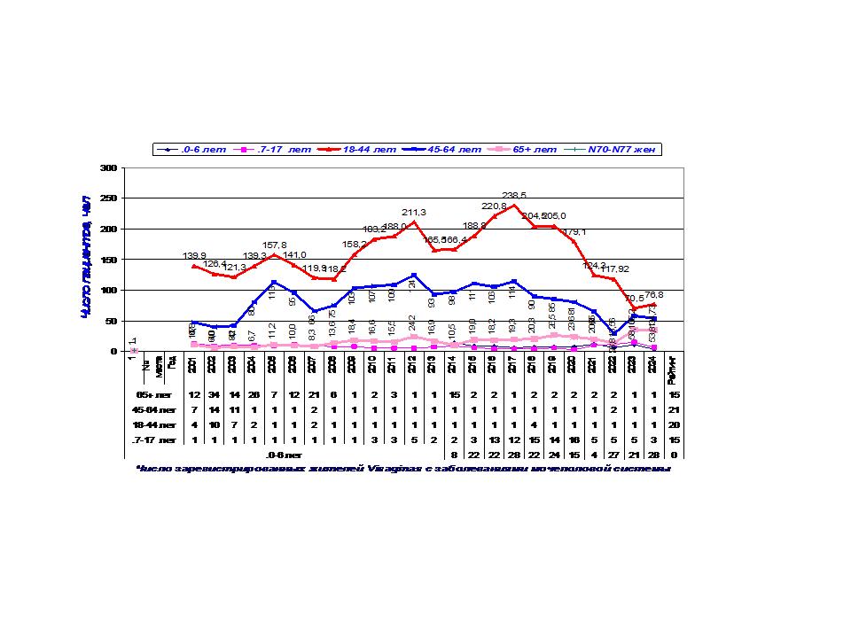 Снижение числа регистрируемых жителей города заболеваниям мочеполовой системы может быть связано с изменением численности жителей в возрасте 18-44 лет и 45-64 лет.