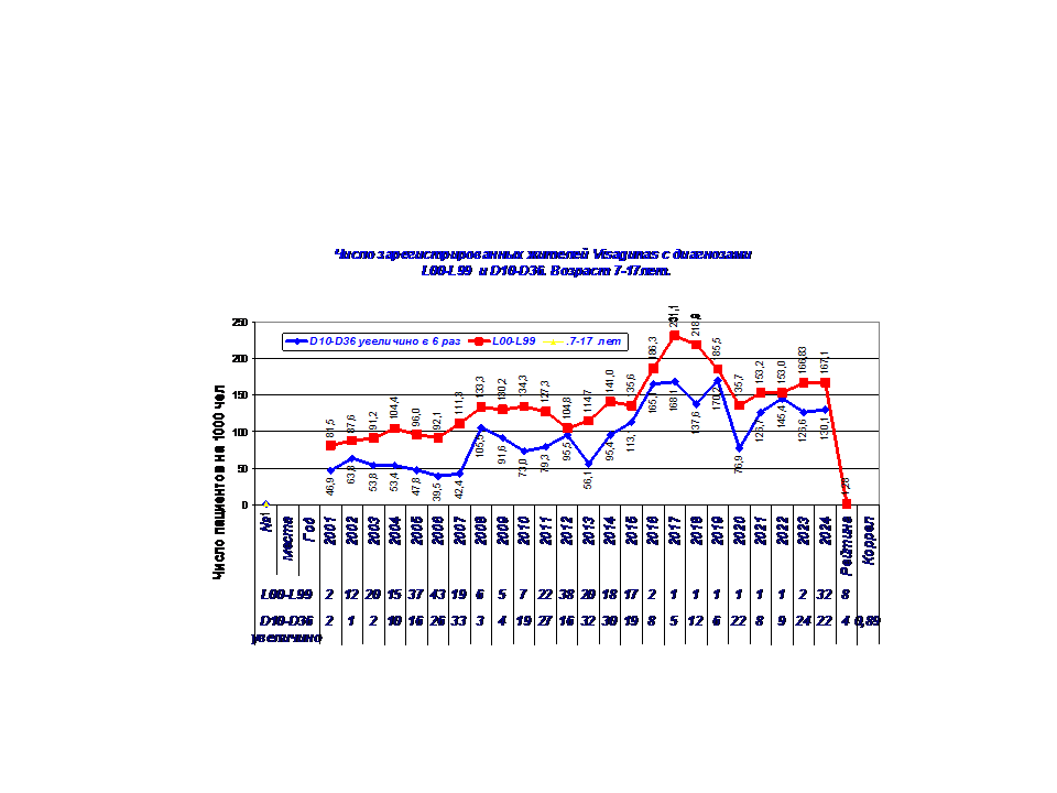 Здесь представлены данные по заболеваемости жителей Visaginas в возрасте 7-17 лет с 2001-24 г.