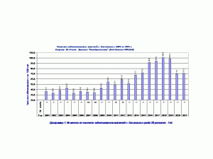 Таким образом, заболеваемость жителей Visaginas самая высокая начиная с 2001 года (17 раз первое место, 2 раза второе и 2 раза 4 место).