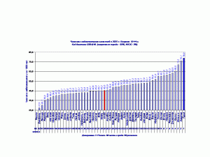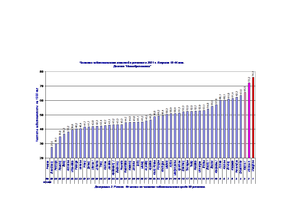 Систематизация произведена по величине частоты заболеваемости в каждом регионе. Регион, в котором частота заболеваемости была самая высокая, присваивался номер 1. Региону с минимальной частотой присваивался № 50.