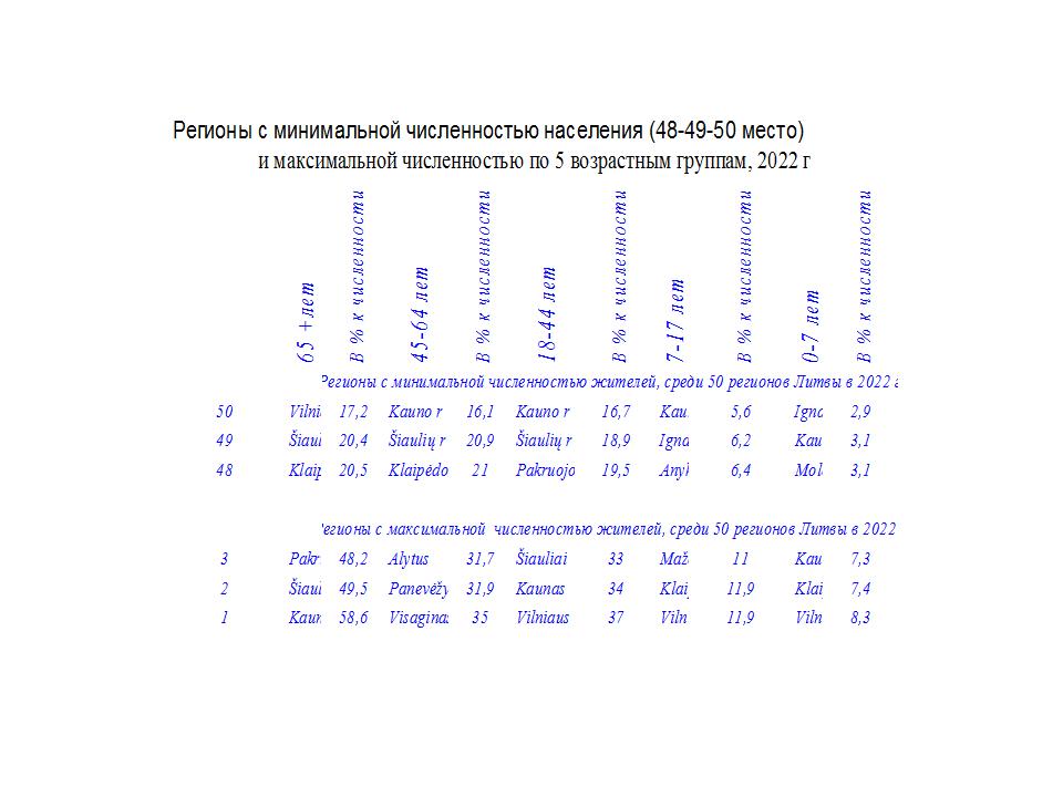 Демографический рейтинг по регионам Литвы в 2022 г. 5 возрастных групп.