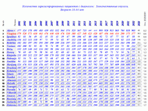 Систематизация данных по частоте заболеваемости жителей в 50 регионах Литвы в возрасте 18-44 лет (кол диагноза С000-Д48), позволила: