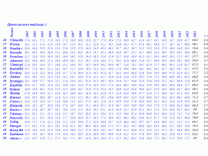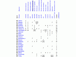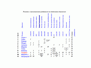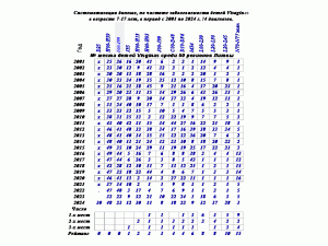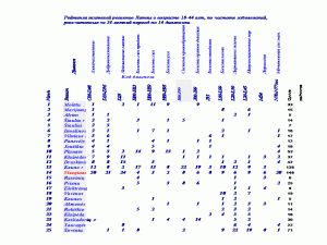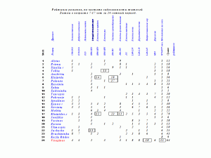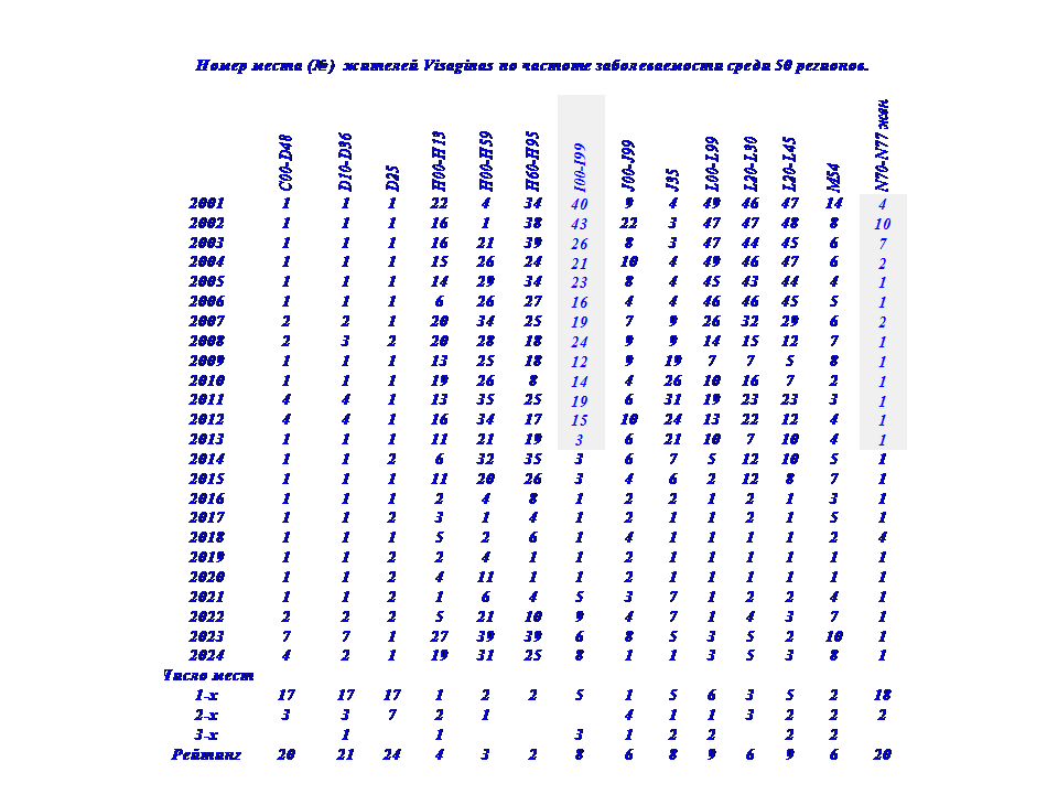 В таблице 6 представлены данные о номере места, которые занимали жители Visagins в течение 24-х лет, по 14 диагнозам.