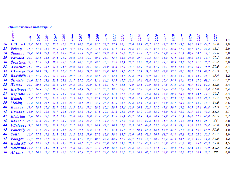 [2] «Частота заболеваемости жителей в 50 регионах Литвы с 2001 по 2022 г», опубликовано на сайте: https://otcc.lt/.