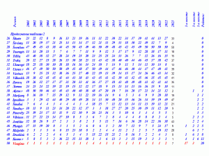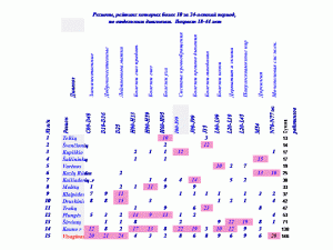 В таблице 3 представлены регионы, рейтинг которых за 24-летний период был минимальный.
