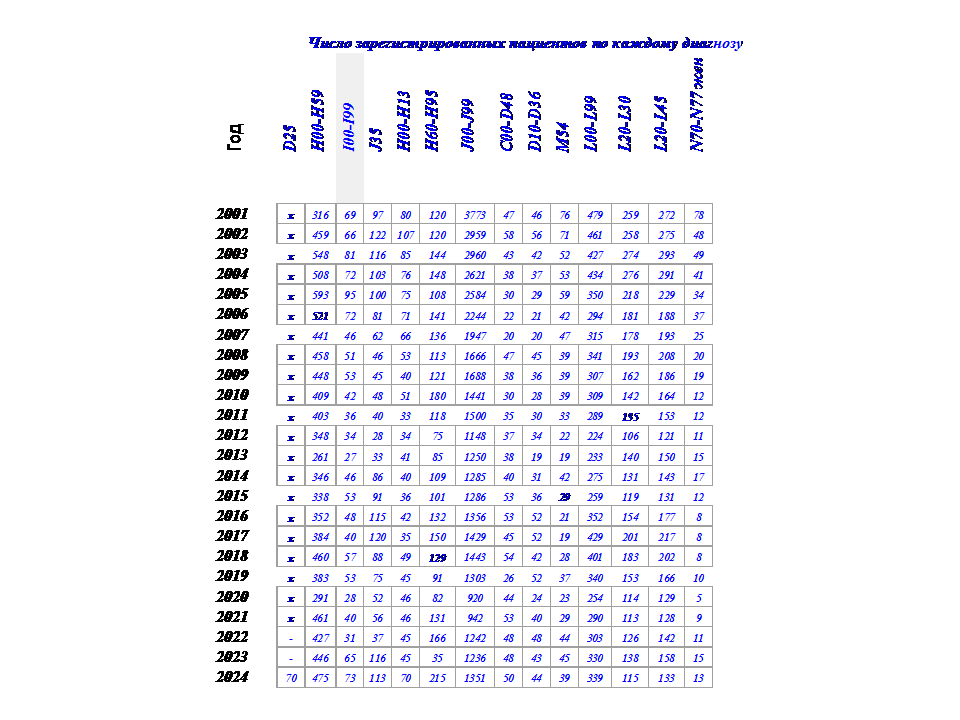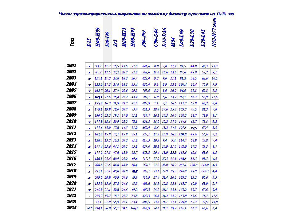 Данные Института гигиены позволяют систематизировать частоту заболеваемости, как по обобщенным параметрам, так и по уточняющим.
