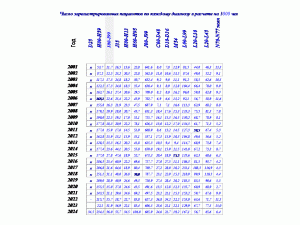 По данным, представленным в таблице 2, к проблемным регионам следует отнести регионы Širvintų, Kauno r, Visaginas, Причем, жители Visaginas имеют самый высокий суммарный рейтинг 146 из 336. По тому, ниже представлены подробные данные о заболеваемости жителей Visaginas по 14 диагнозам болезней за 24-х летний период.