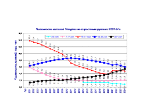 численности. По возрастной группе 65+ лет увеличение численности с 1,4 тыс. в 2001 г до 5,4 тыс. в 2024 г.