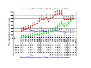 Следует отметить высокий коэффициент корреляции между числом регистрируемых пациентов и численностью жителей в возрастной группе: 18-44 лет коэффициент — 0,7, в возрасте 45-64 лет -1,0